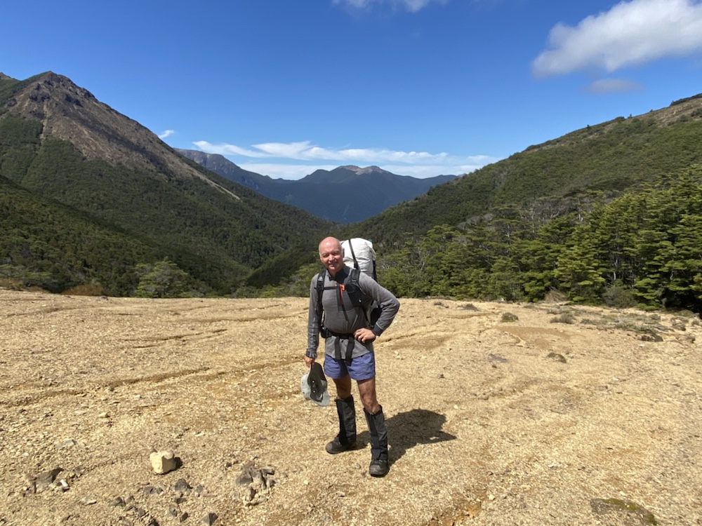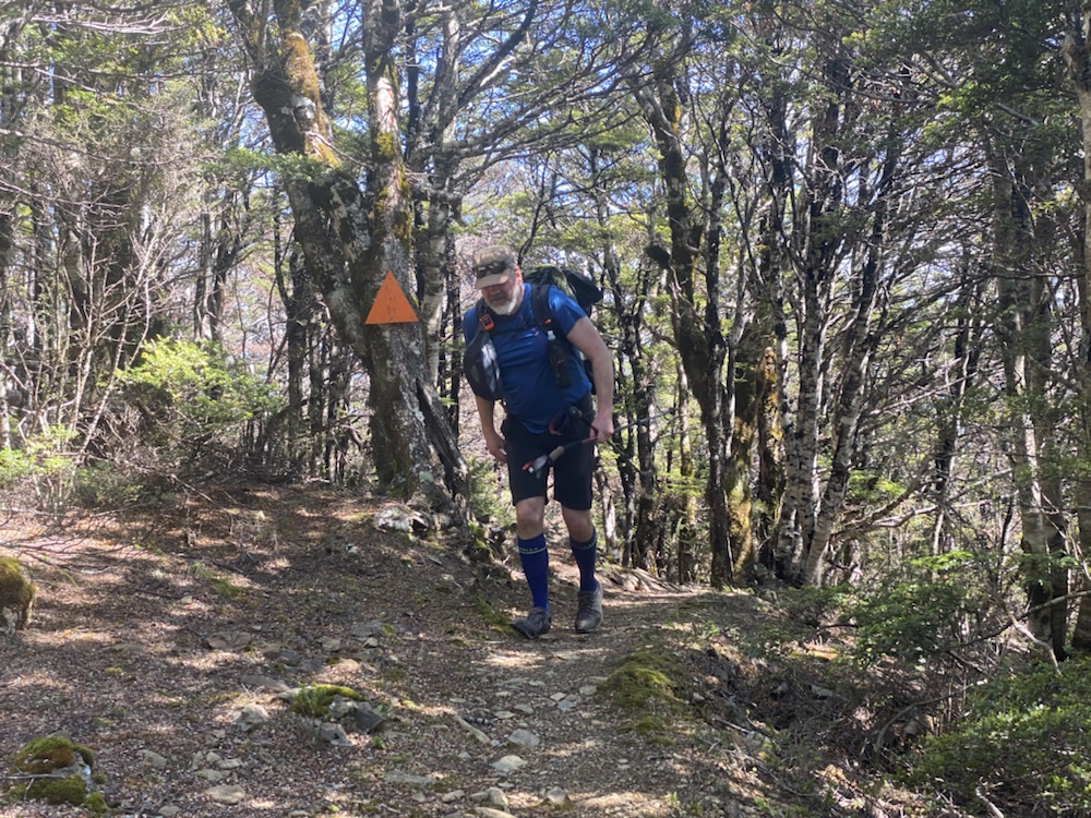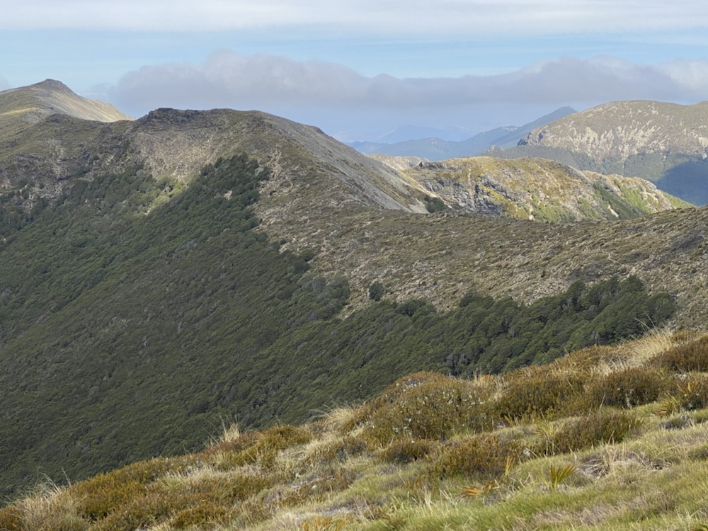 15 Jan. This is reputed to be one of the harder days in the Richmond Range. Only 12km but 1500m of climb. I left Hacket Hut at 07:30 and followed a river bed for about 2km before the 900m climb South up to Starveall Hut. Got there at 10:45. Freya was just moving on as she was pushing for Old Man Hut, about another 5 hours beyond Slaty. Stefan caught up with me as I arrived at Starveall. An excellent day of weather with little wind.