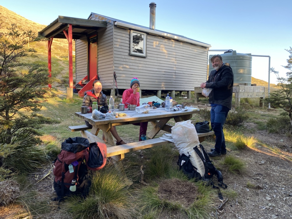 Good sleep apart from the mice in the hut. They seemed to be around the wood pile and a couple of packs. A couple of nights ago Katrina found her nuts bag inside her pack had been chewed by mice.