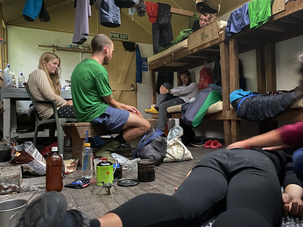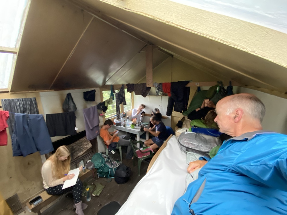 With 13 people in the hut and everyone’s wet clothes hung up in a forlorn attempt to dry, the hut has a nice “hum” to it. As everyone is in the same state, there are no complaints. Rau was able to confirm that Vicks vapour rub doesn’t work as a deodorant and is pretty uncomfortable 😩