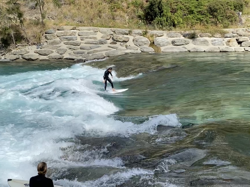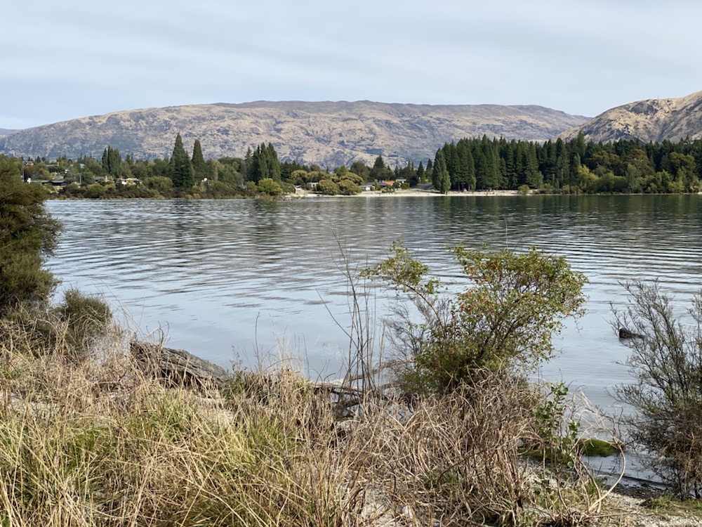 The route follows the Hawea River Track, and from the people passing me, it’s more popular with cyclists than walkers. The White Water Park is popular with surfers and kayakers who were doing their stuff. Just over the suspension bridge and about 10 trail km short of Wanaka is Albert Town. The Pembroke Patisserie there had been recommended by several people, and justifiably so. Excellent lunch stop from 13:45 to 15:10. After that, the route followed the Clutha River to its source in Lake Wanaka and then around the lake edge into town. I arrived about 17:30.