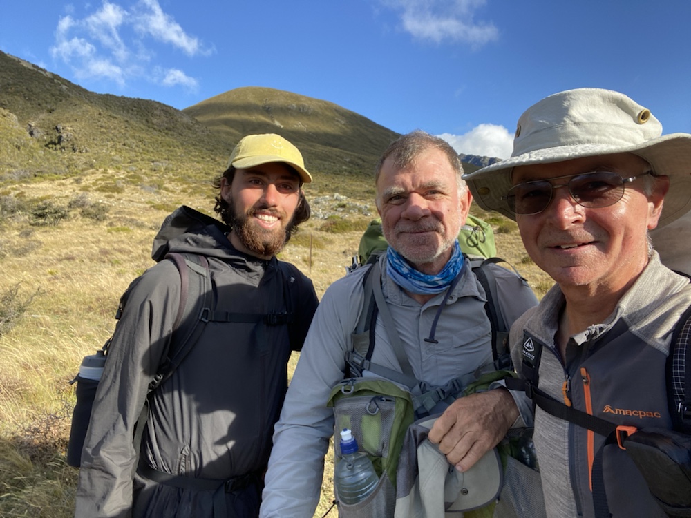 9 Mar. As it was a relatively short day ahead, no one was in a rush to get away, so it was about 07:30 when everyone emerged from sleeping bags. Chewy was away first. Richard, Yoan and I left at 08:45 and walked as a group for the day, making use of Yoan’s knowledge of the track as he had walked up it some days earlier. After about 30 mins we saw Chewy coming towards us; he had left his hat at the hut. About an hour later he passed us with his hat, back on the trail. A very fast walker!