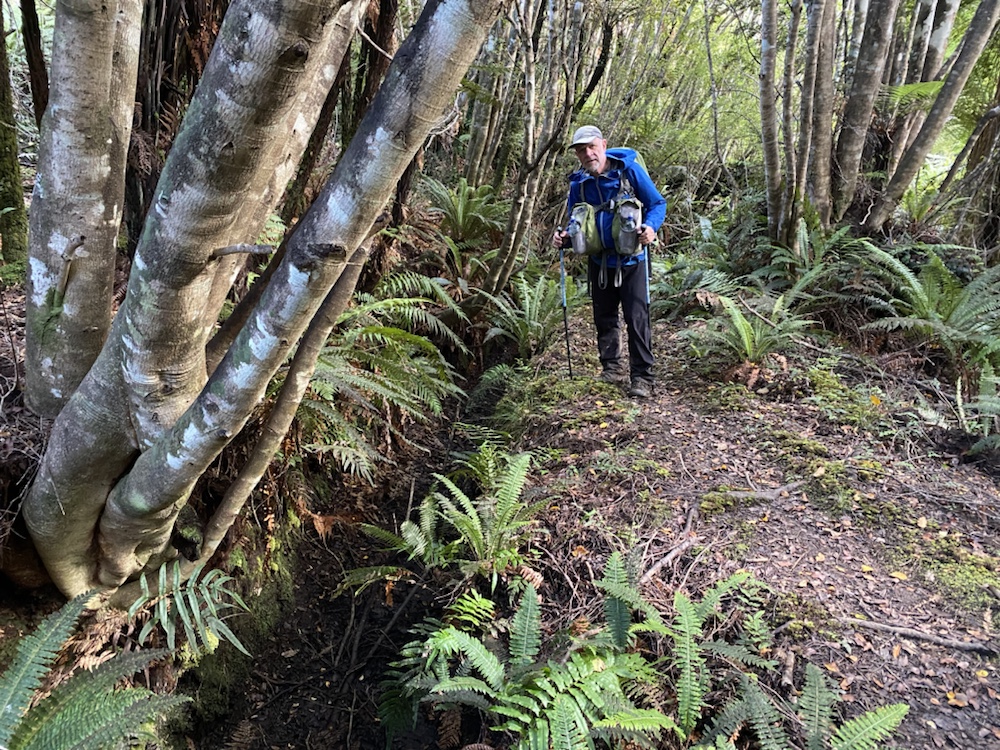 18 Mar. It was good to be walking at 08:20 in the fresh air after a night in a hut strongly smelling of rat urine and droppings. However as we found out from Roy and Sirkka later in the day, even camping in Longwood Forest, the rats try to chew their way into tents. They were awake all night fending them off.