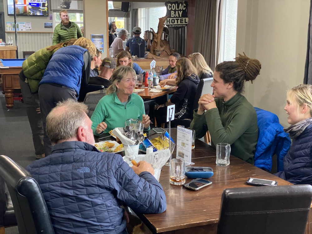 A 7km road walk took us into Colac Bay campsite where Richard had booked cabin bunks. Lucky he did, as there were a lot of TA walkers, 22 in all, and we half filled the bar in the evening. Most were familiar faces. We shared a room with Gail who had wisely given the Longwood stretch a miss and Aliss was doing it on her own, expecting to be in tomorrow. The others included: Jimmy, John, Anouk, Jean, Anne-Marrie, Frank, Maria, Roy, Sirkka, Al, Grant, along with some new faces. I met Josh and Nina (Luxembourg and Germany) who Richard had spent a lot of time walking with on North Island.
