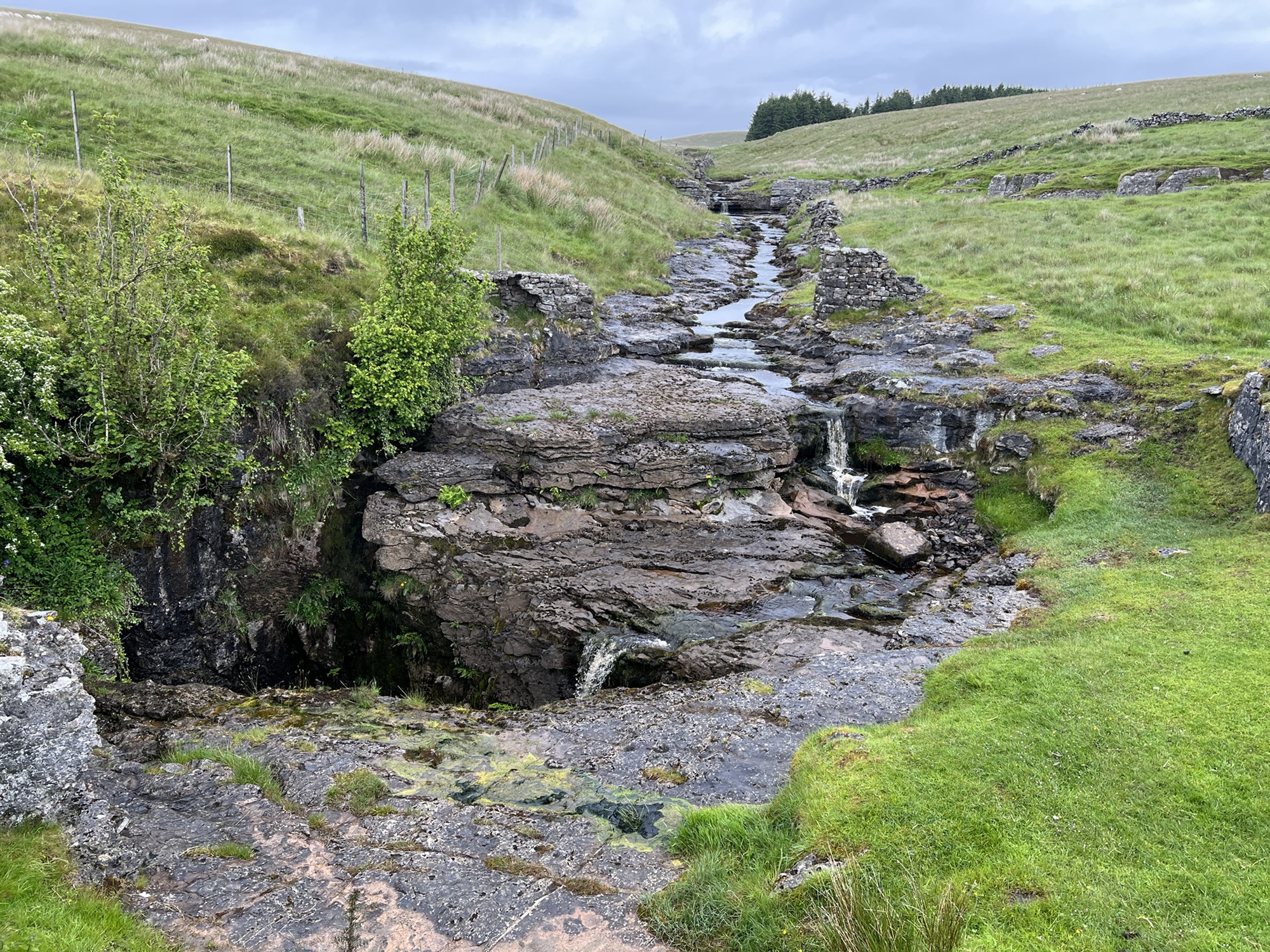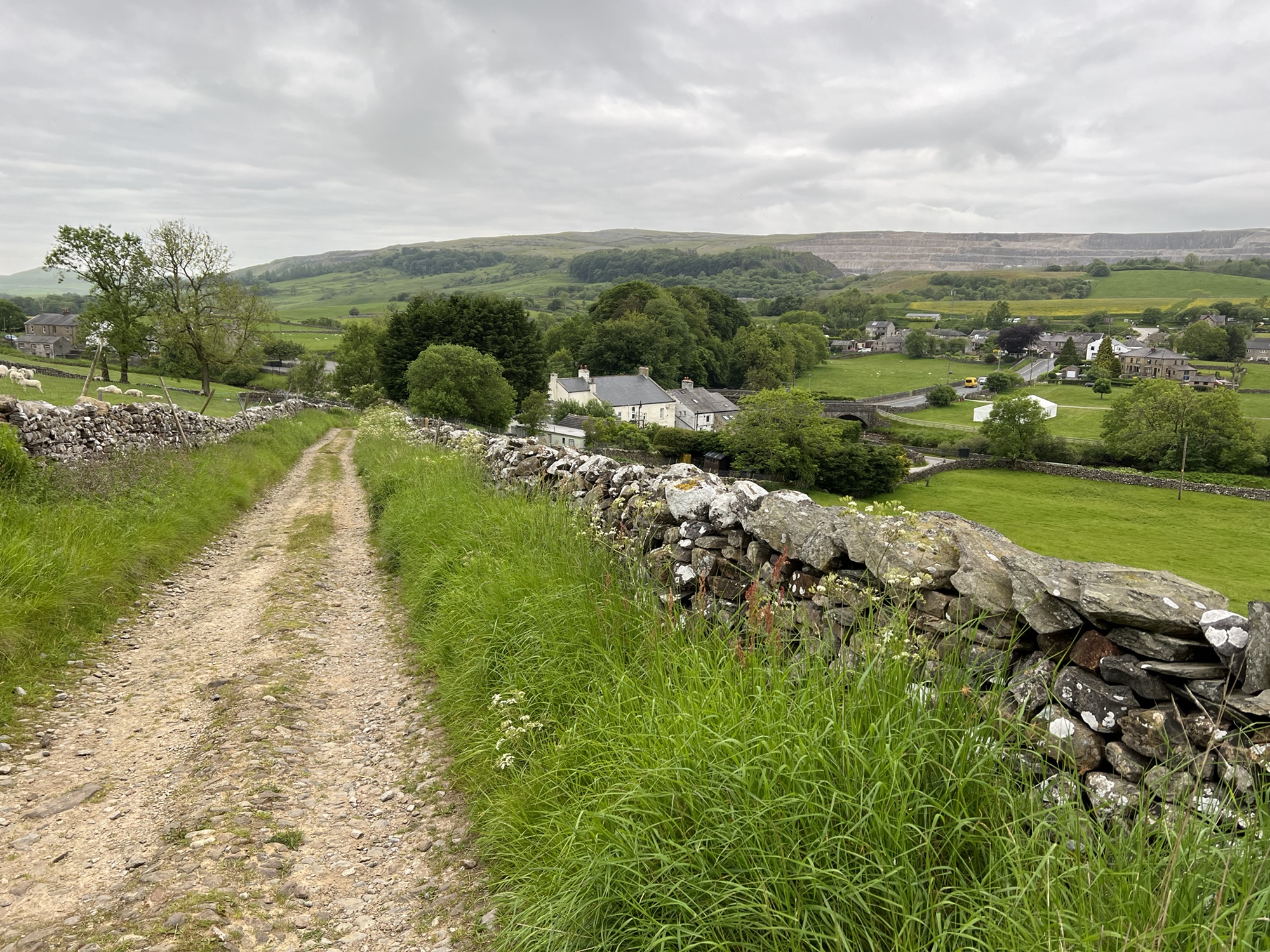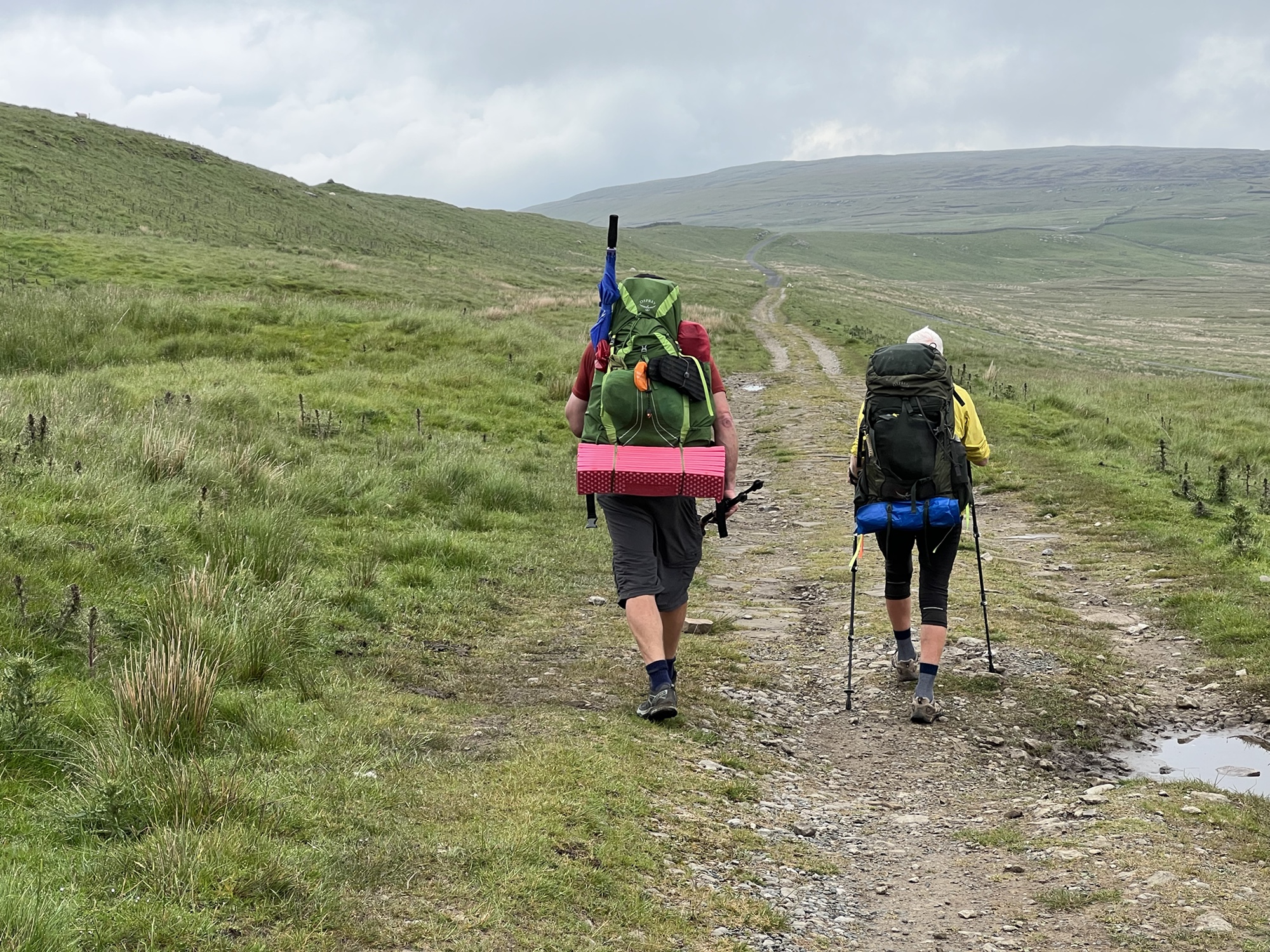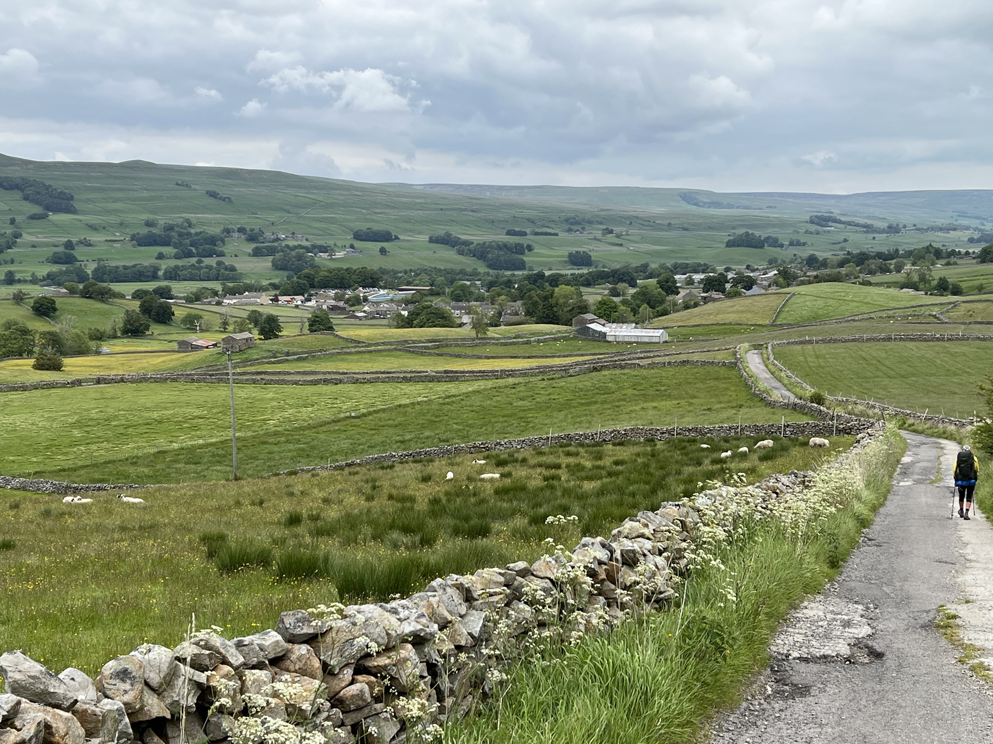 14 June 2022. The campsite was noisy all night with the DoE students. They obviously don’t get taught campsite etiquette these days! Note to self: avoid school groups camping. All the Pennine Way walkers camping had a bad night so we were up early and off at 0700. Patrick, Paul and I walked as a group to Hawes. It was easy walking on farm tracks most of the way with a gentle 300m climb up Cam And Dodd Fells and a descent into Hawes. Little wind today. We met two pairs of walkers coming the other way, walking John o Groats to Lands End.