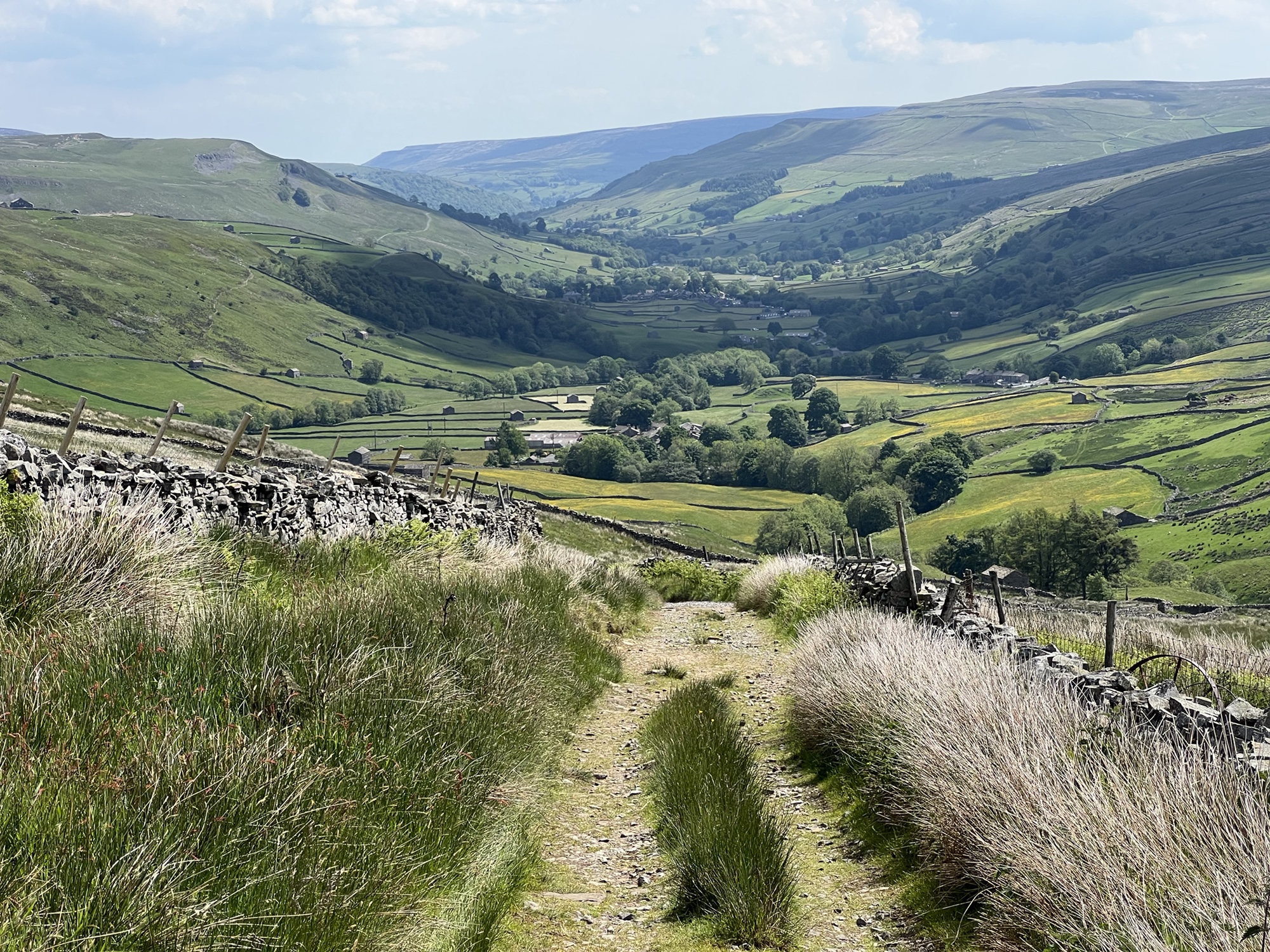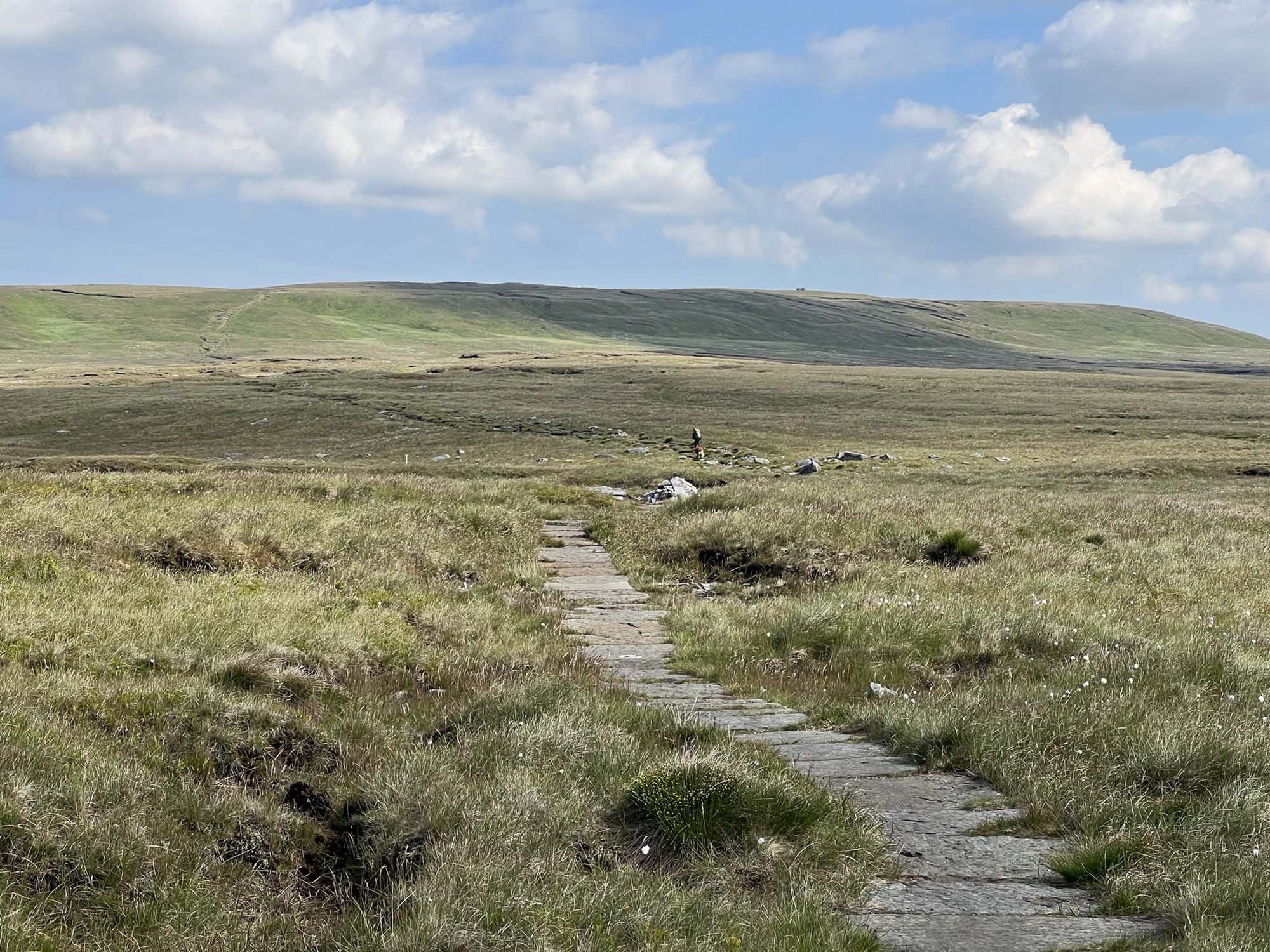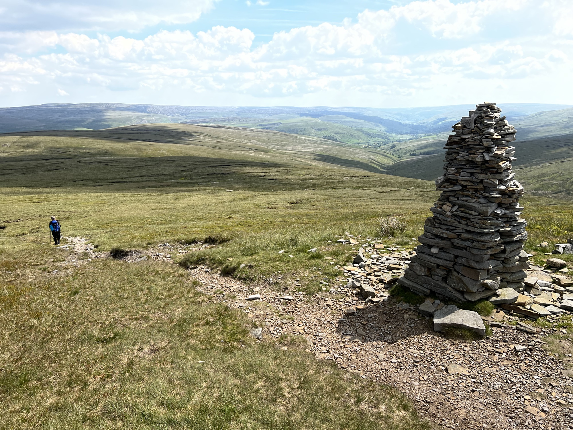 15 June 2022. Had a good night’s sleep. It was a cool night with little wind and the tent was wet with condensation (more weight to carry). Walked the 15 minutes into Hawes from the campsite at 0720. Got a few food provisions at the Spar shop and was back on the route at 0800. Today was 29km with over 750m of climb. Through Hardraw with a 7 km climb up Black Moss Moor to Great Shunner Fell (716m), where I meet up with Fred, Okey and Geoff (1100-1115 hrs). From there it was down into Thwaite. The cafe there was closed so I continued to Keld for a couple of pots of tea and a bacon roll at the cafe at Rukins campsite (1400-1545). Good long break with Fred, Okey and Steve.