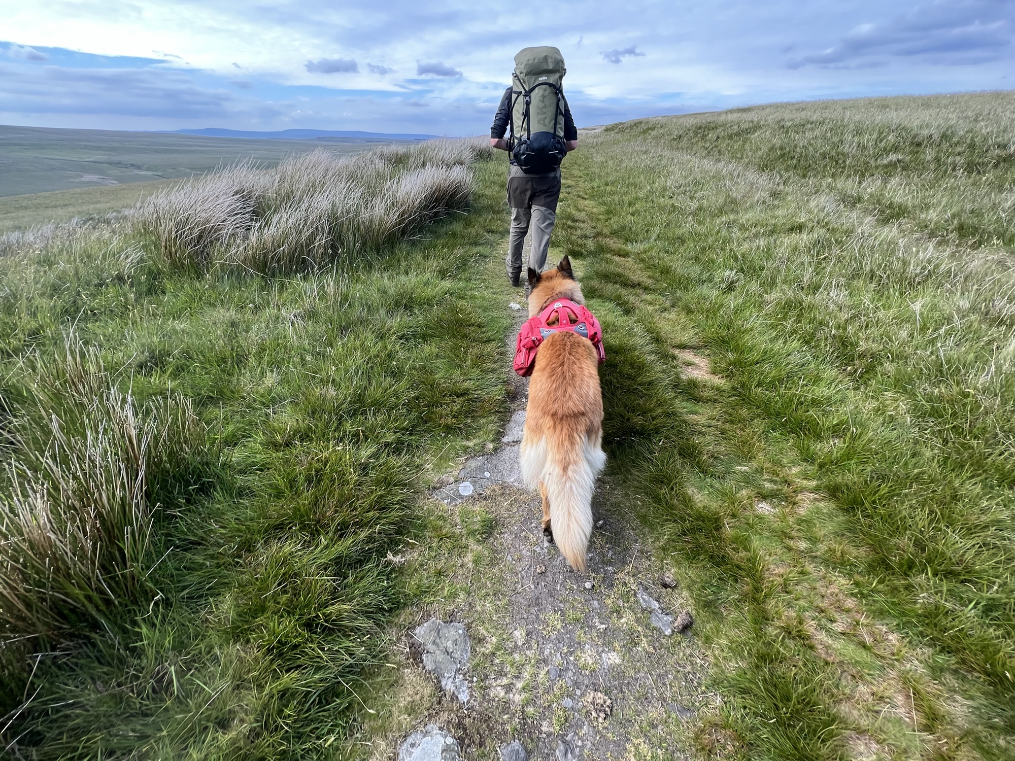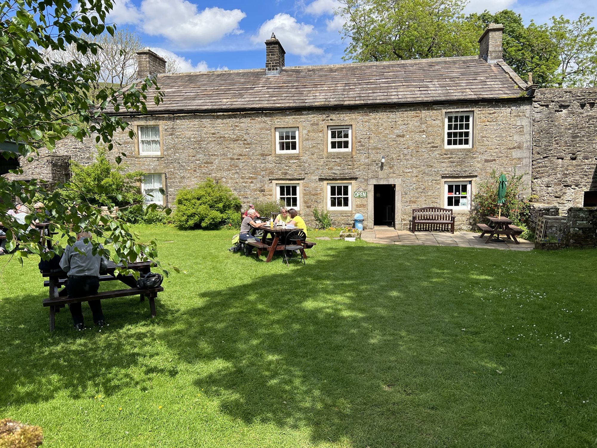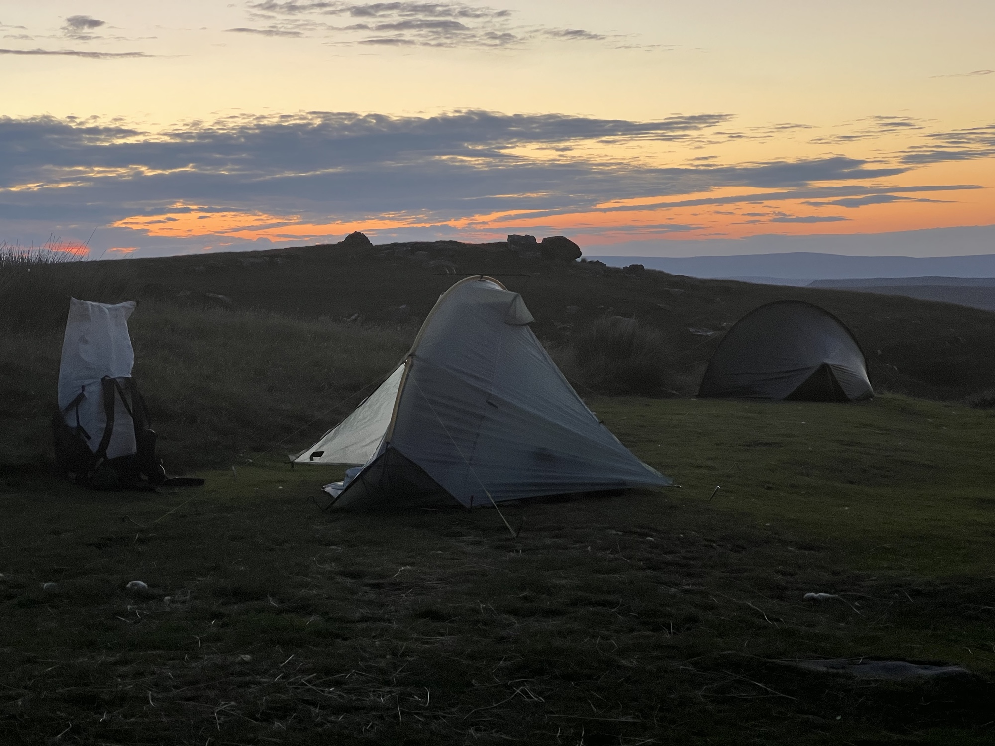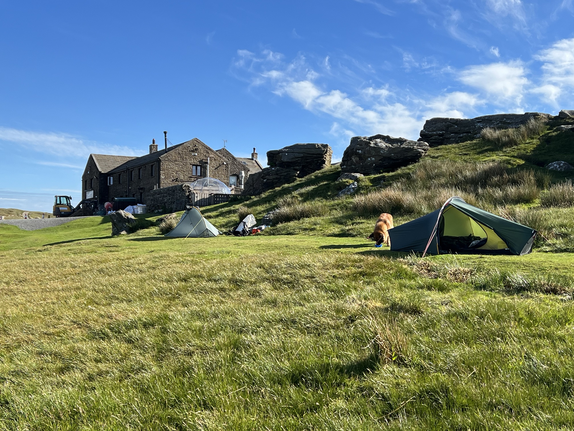 The last section of the day was the 6km up Stonesdale Moor to Tan Hill Inn (536m) where we were able to camp at the back of the pub (£10) and make use of shower and toilet facilities. For once the end of the day was an ascent rather than a descent. Nice given a 29km day. Steve and Charlotte had booked pub rooms but I was camping with Fred and Okey. Sunny calm evening.