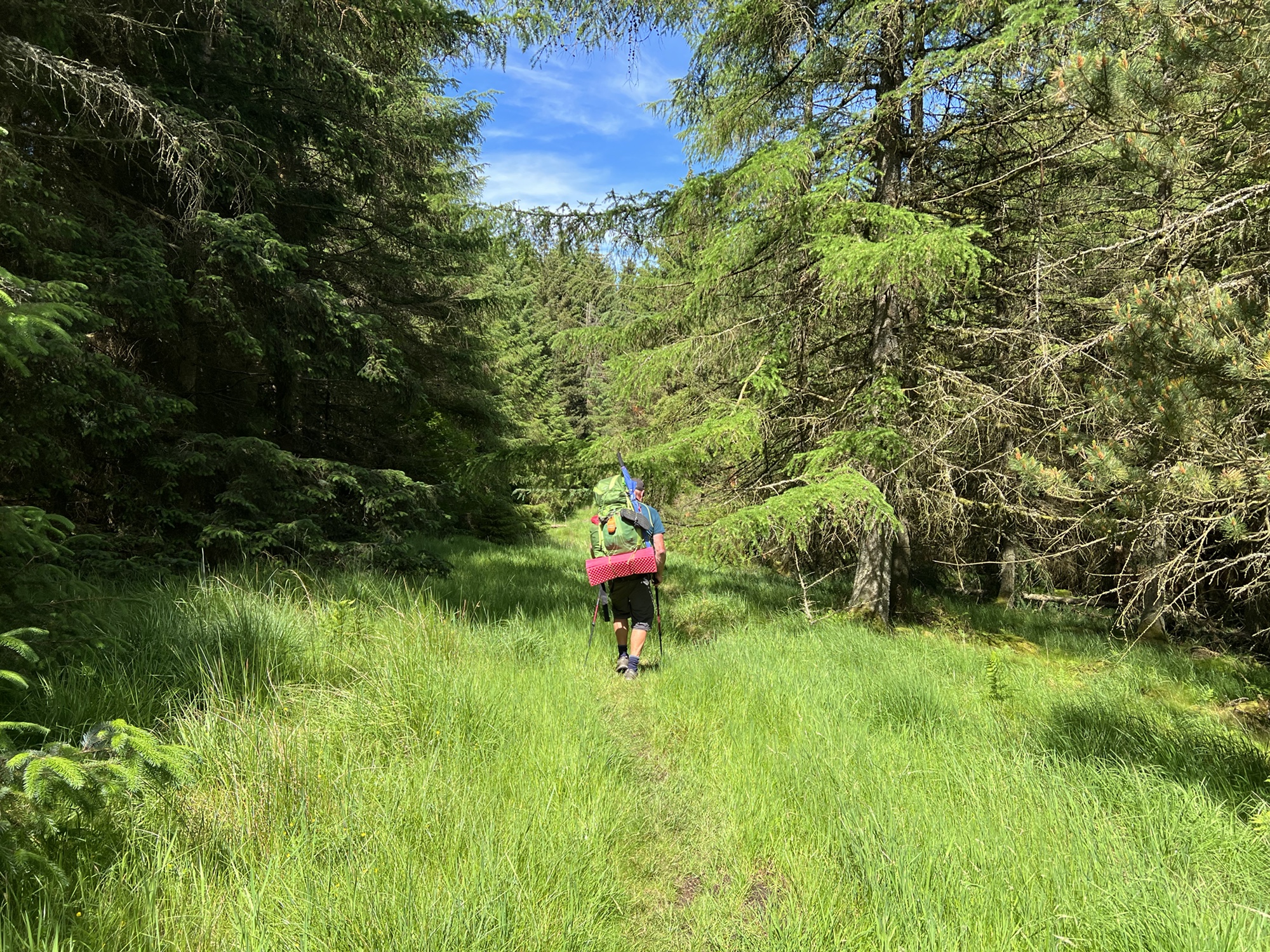 20 June 2022. This was a long day. It ended up being 36km (22 miles) in 11.5 hours. No big climbs, but lots of up and down (over 550m of accent). I got away at 0650. It was a cold damp night so my tent was soaked with condensation, adding to the pack weight. As usual, I have one of the heavier packs. Paul soon caught me up.