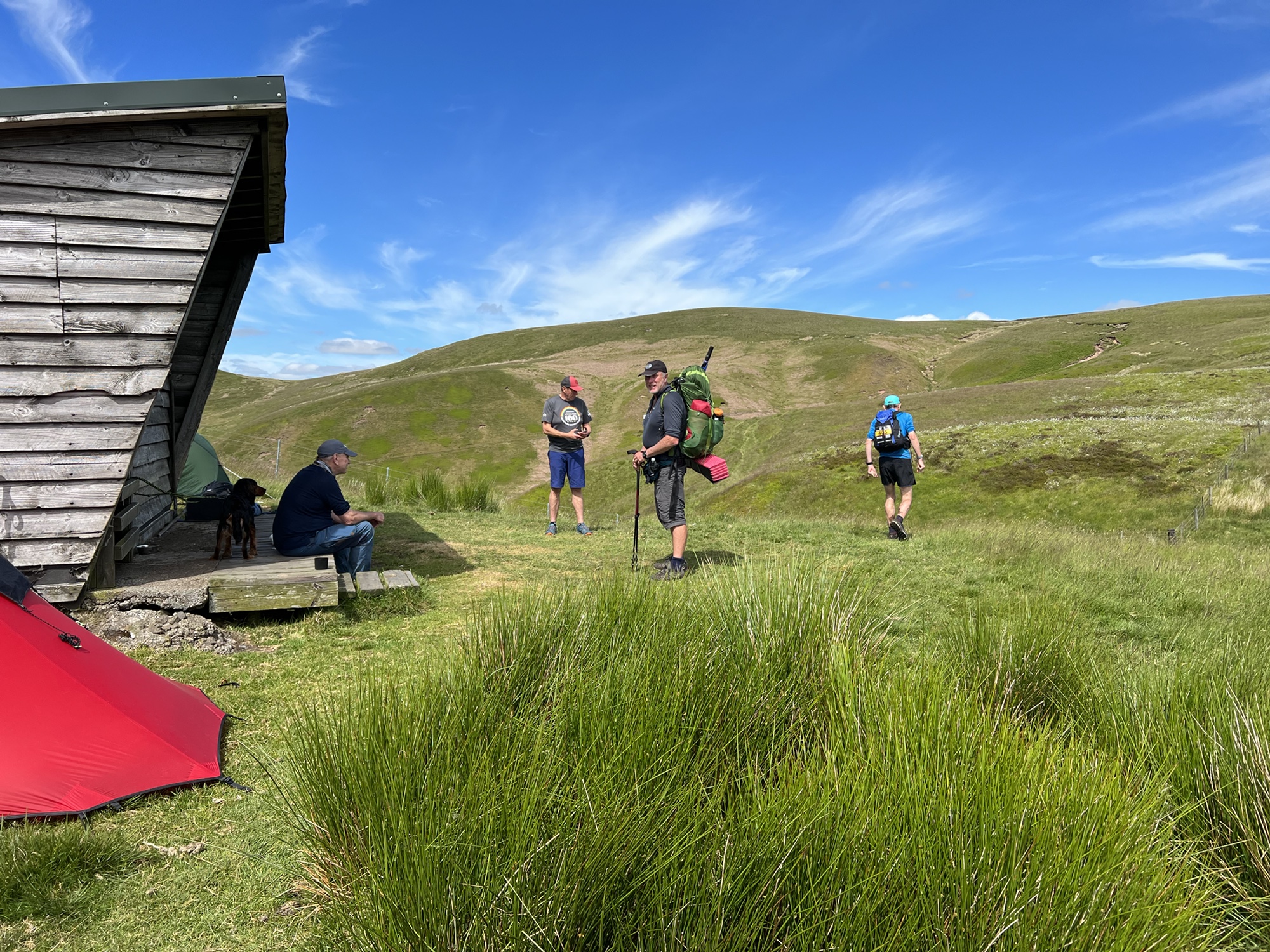 One Spine runner Mark P, passed us while we had an hour lunch stop 1300-1400. Although he was walking due to an ankle injury, he was still going to come second in the men’s race. We passed one of the two huts on route which volunteers were manning as an aid station for runners.