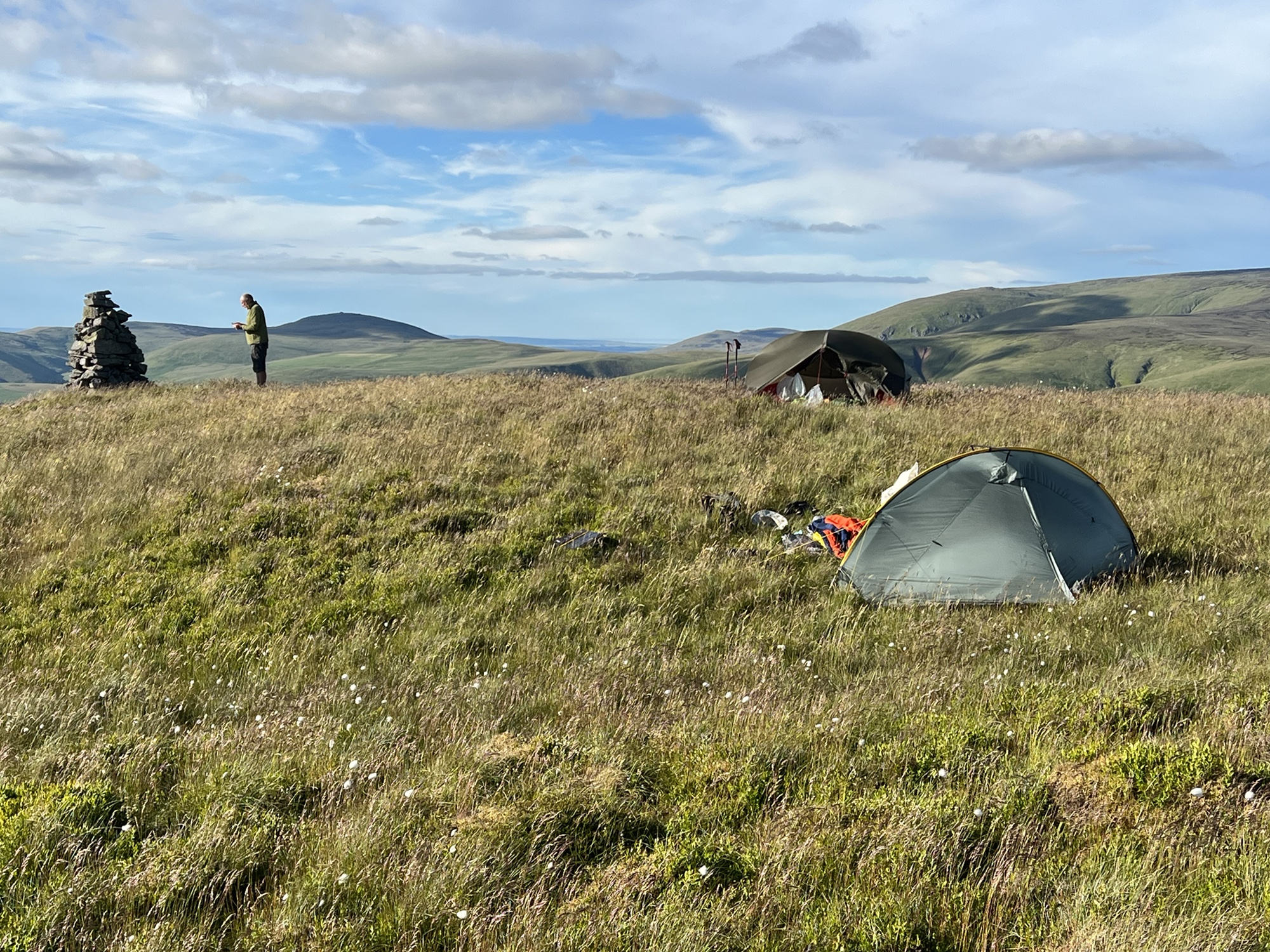 We reached Windy Gyle, which is about the half way mark, and pitched out tents on a bit of a knoll which was reasonably flat. The weather forecast for the night is good, if a bit windy. Good view of the Cheviot (815m) which we will go up tomorrow. 22km today, finishing walking at 1645.