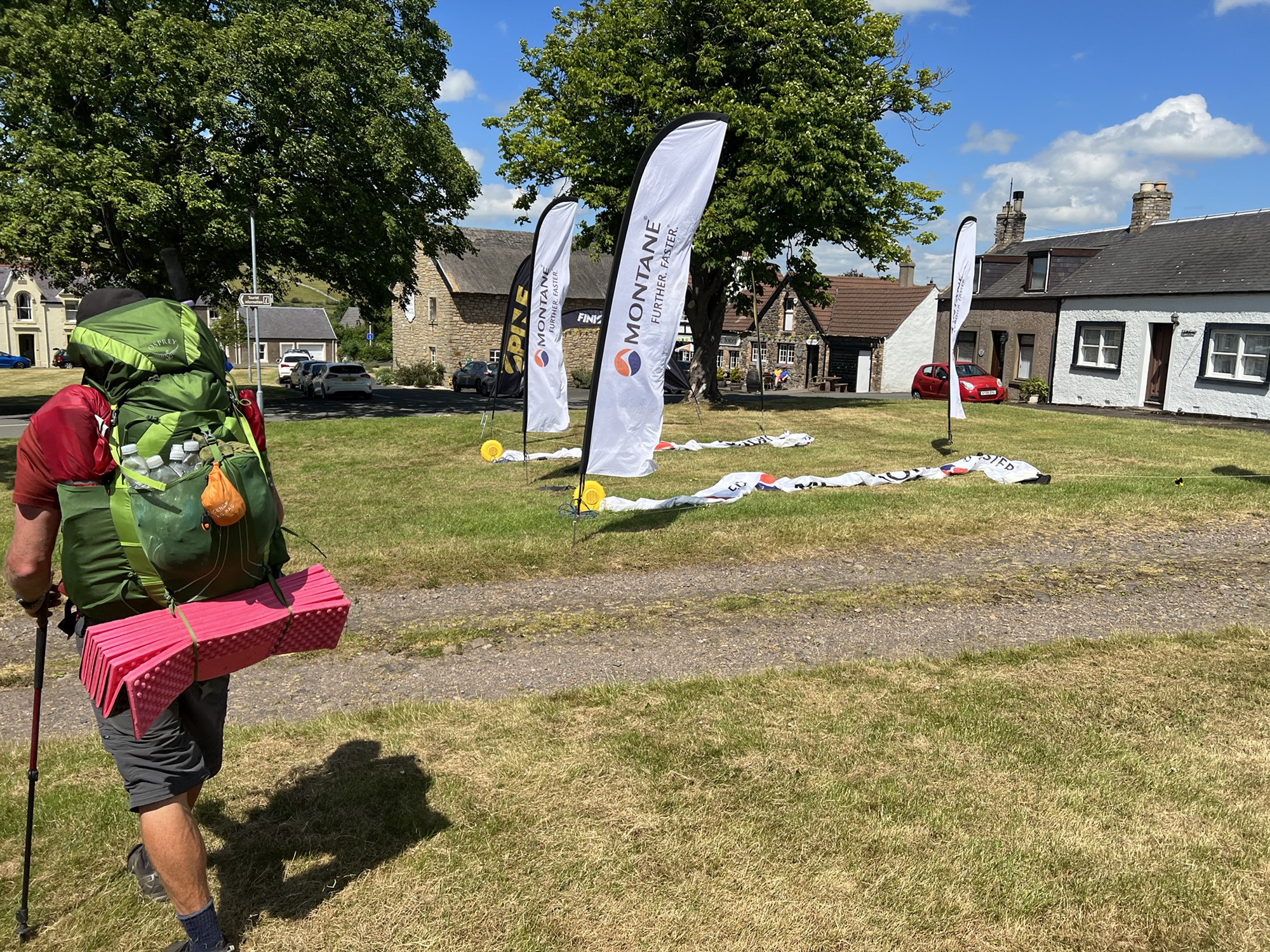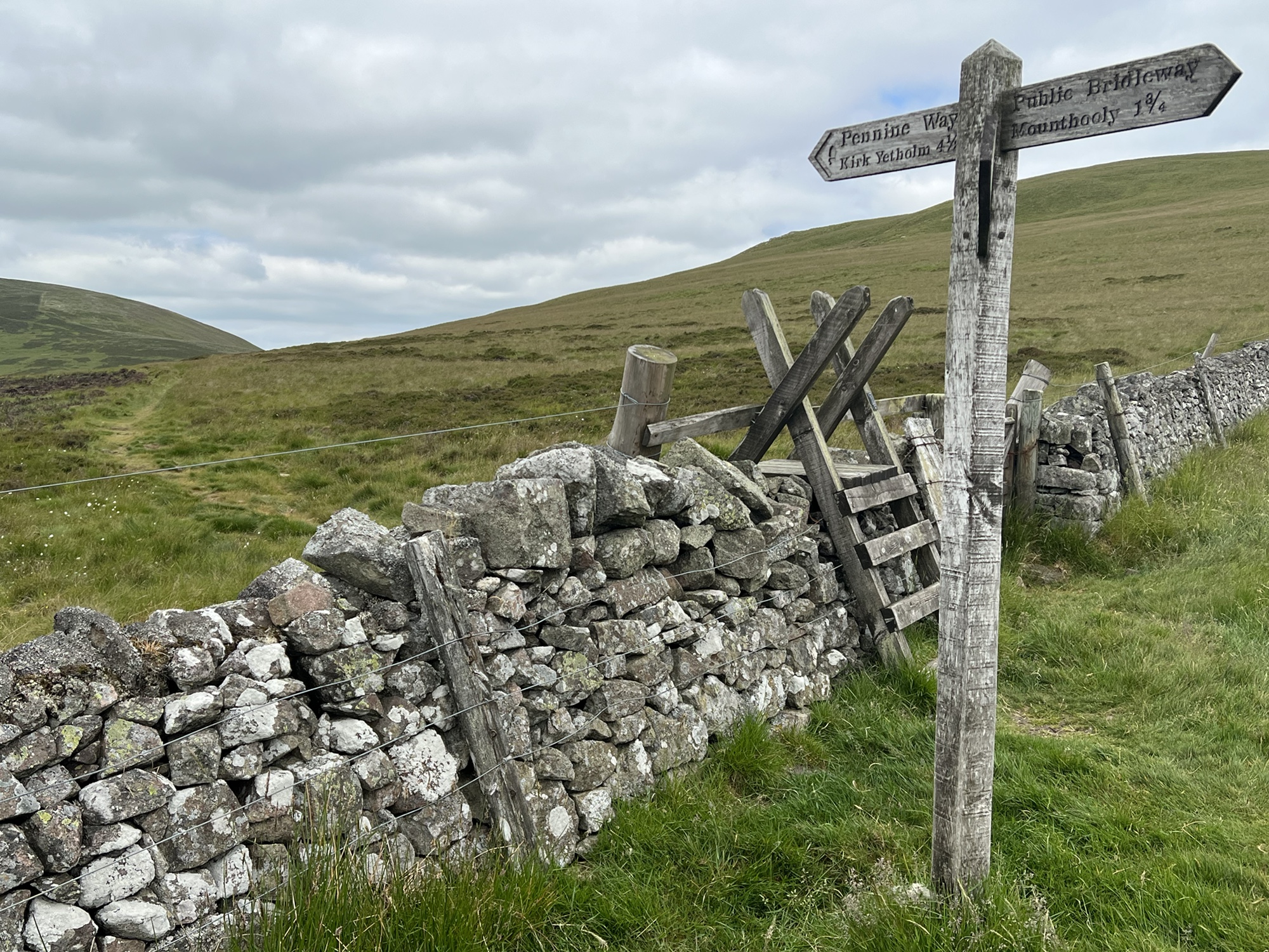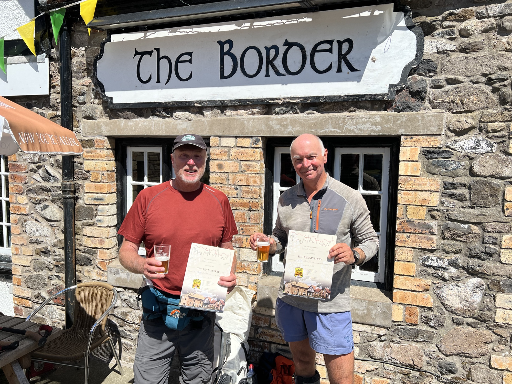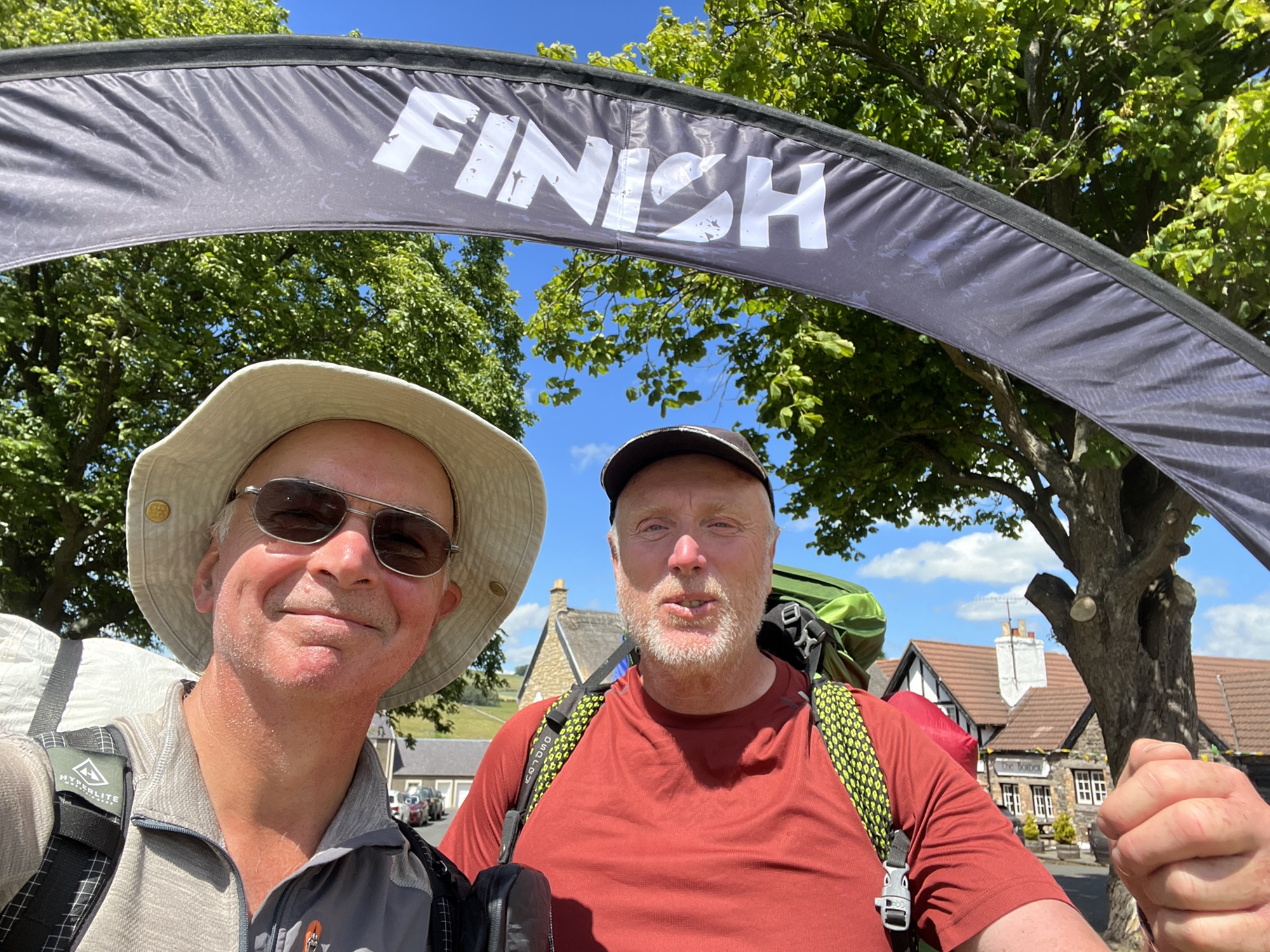 Past the mountain hut the last major peak on the trail was crossed; The Schil (601m). After that it was an up and down descent into Kirk Yetholm (1345), and the Border Hotel, where we claimed a half pint of beer courtesy of Hadrian’s Border Brewery for completing the Pennine Way. No documentary proof was required, but I guess we looked like we had walked it. We had timed it close enough to just get a pub lunch. We hadn’t paid for the Spine Race finish line reception, but everyone was welcoming. 23km today. The weather has been fine with a good cooling breeze. Amazingly I have had only one wet afternoon on the whole trip. 410km+ in 17 days.