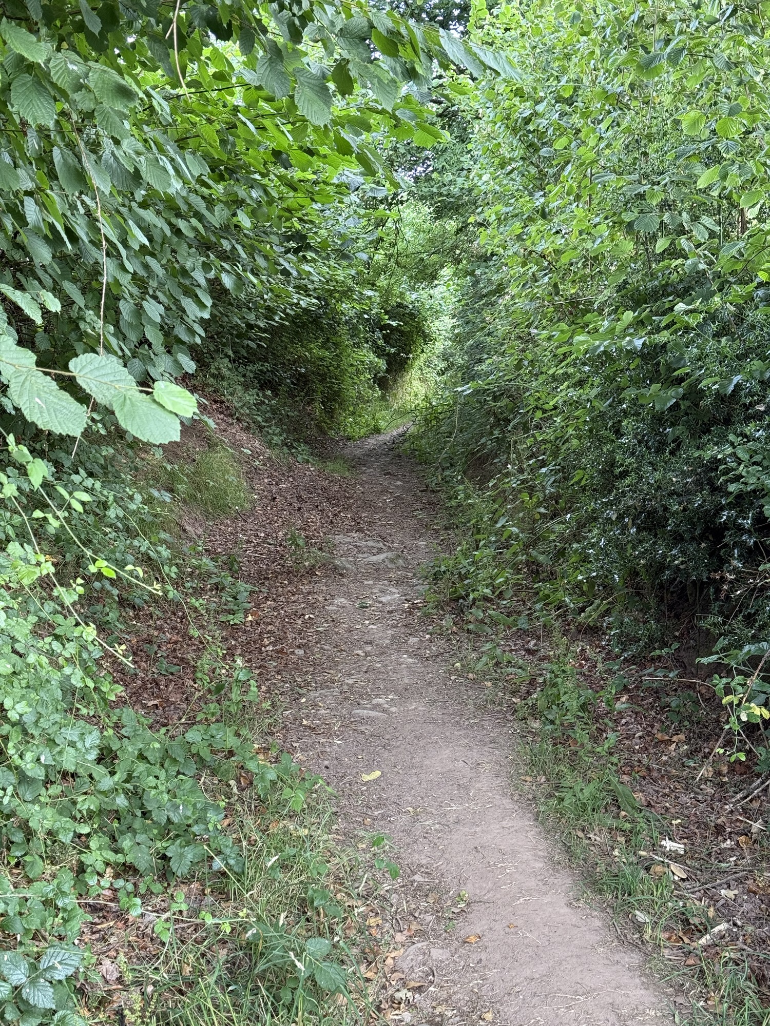 4 July 2025. Up at 06:50, away at 07:05. Getting the routine sorted. After a couple of km, I was back on the trail which was mainly across fields and short sections on quiet single track country lanes.