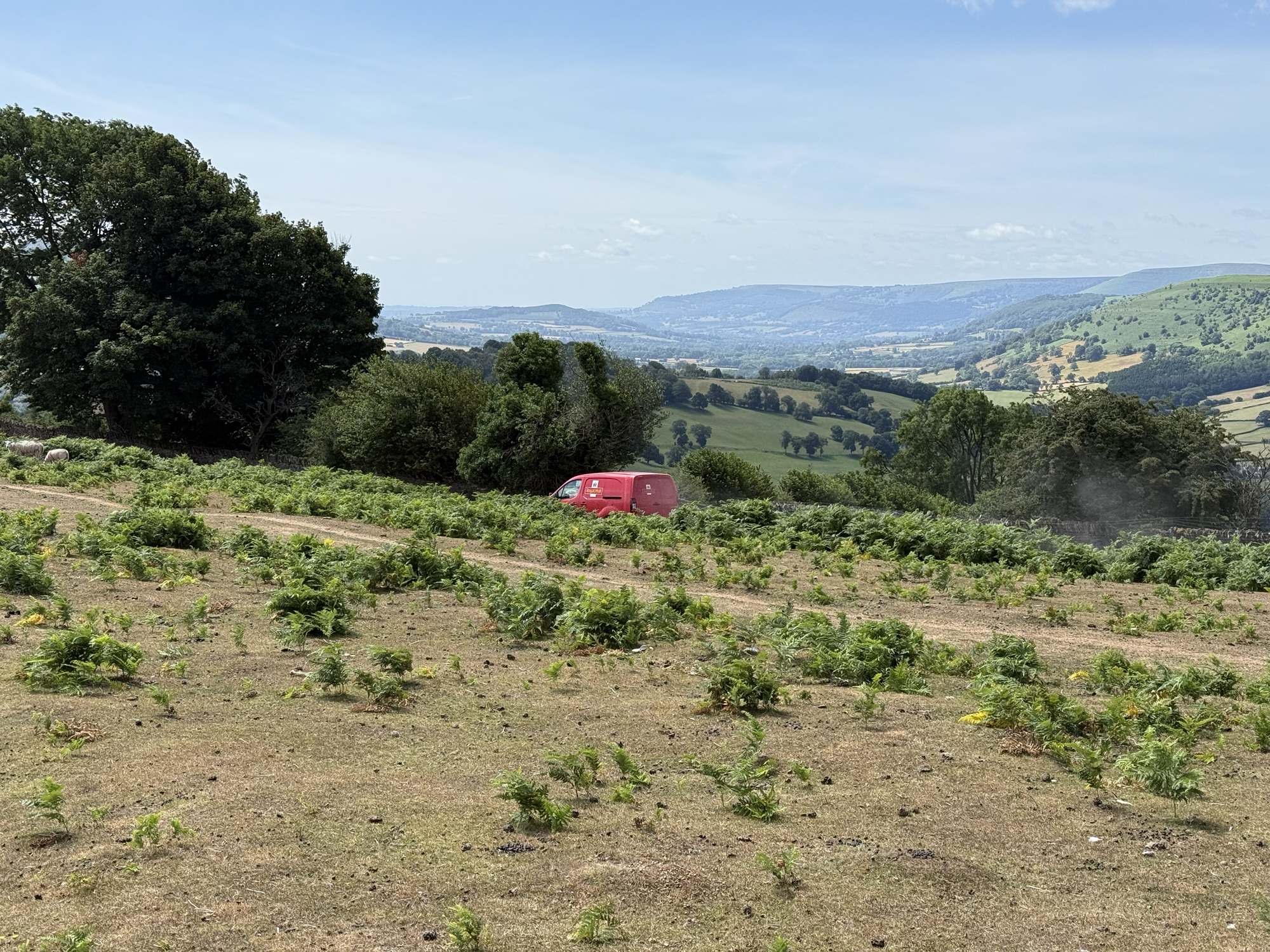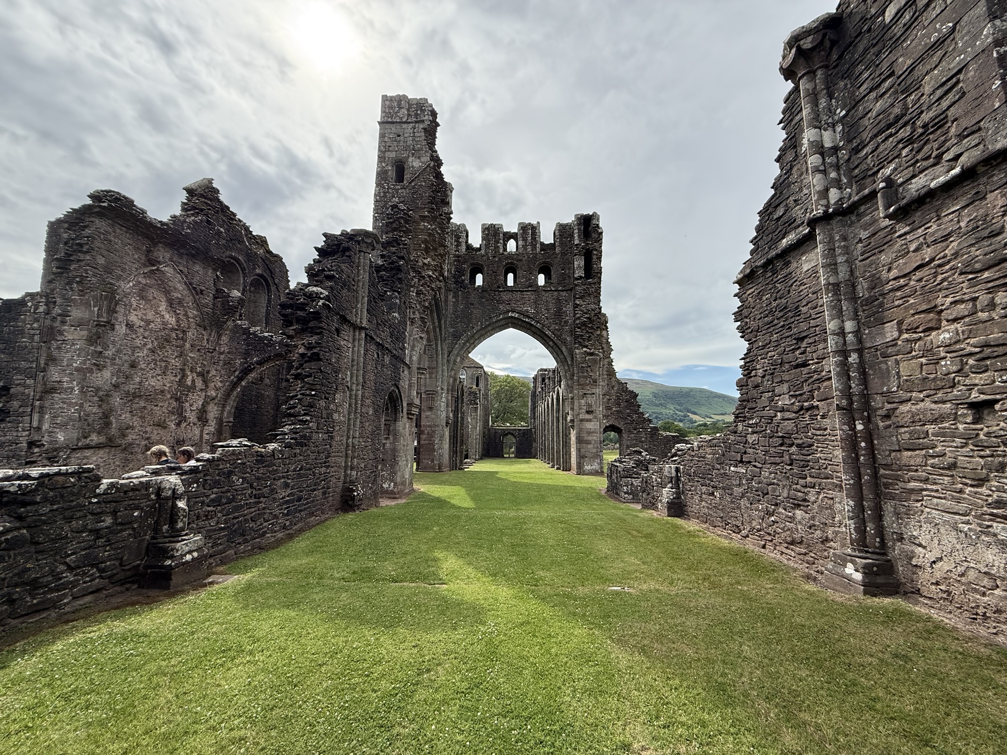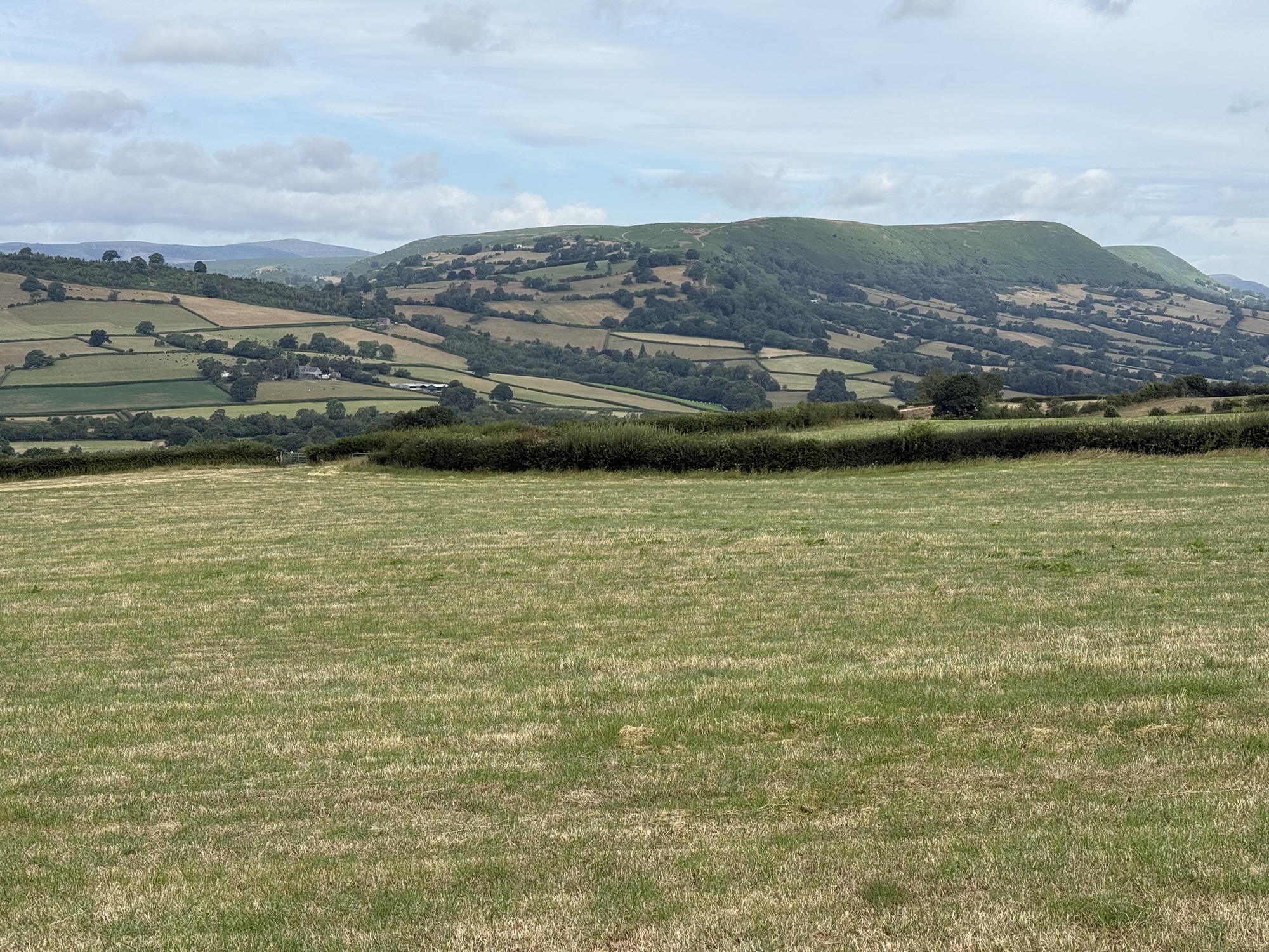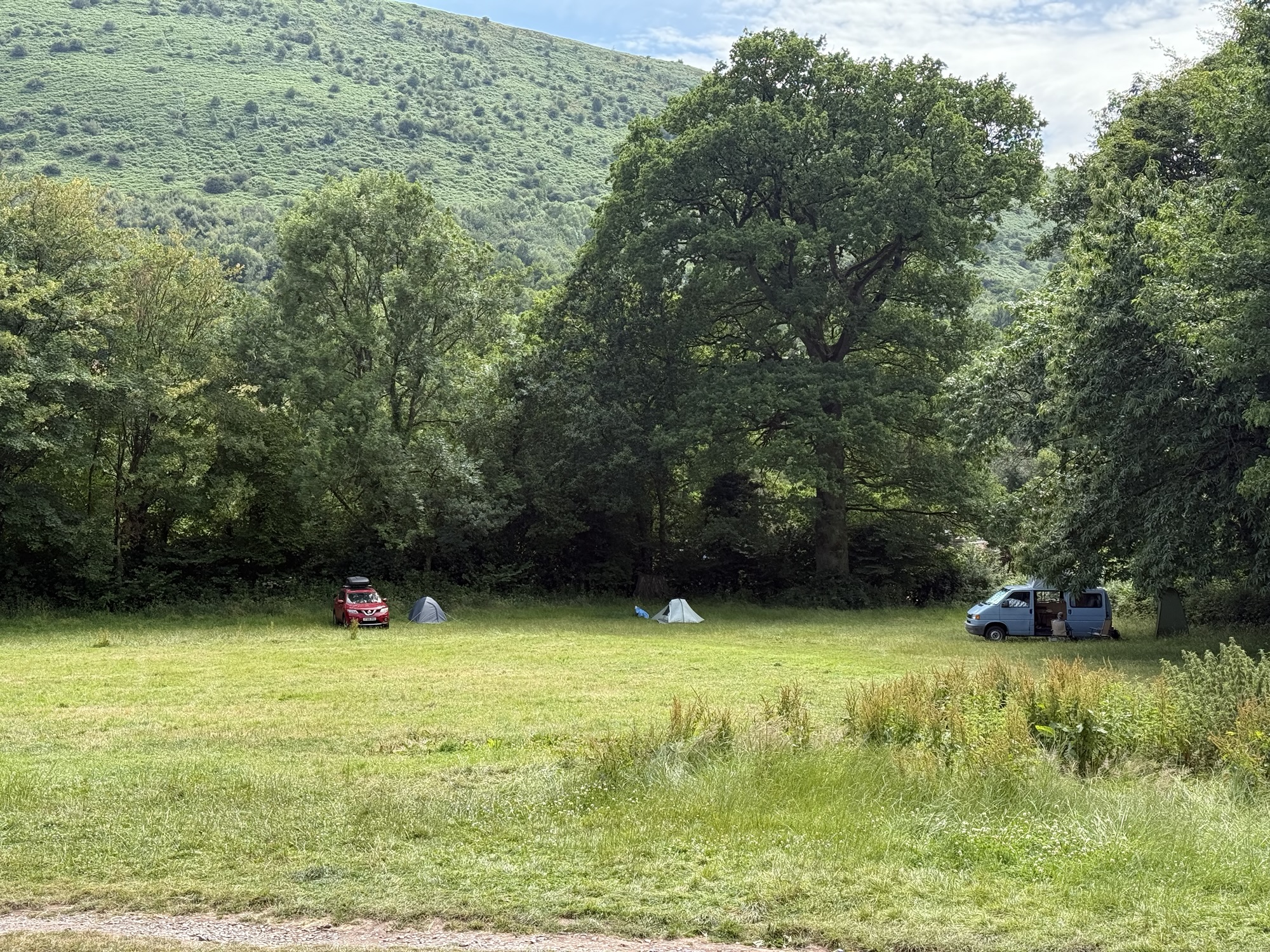 After a few kms along the ridge, I descended into Llanthony along the Beacons Way. Offa’s Dyke continues along the tops to Hay-on-Wye, so it involves a climb out tomorrow morning. Camped at Court Farm campsite, £5 but no showers.